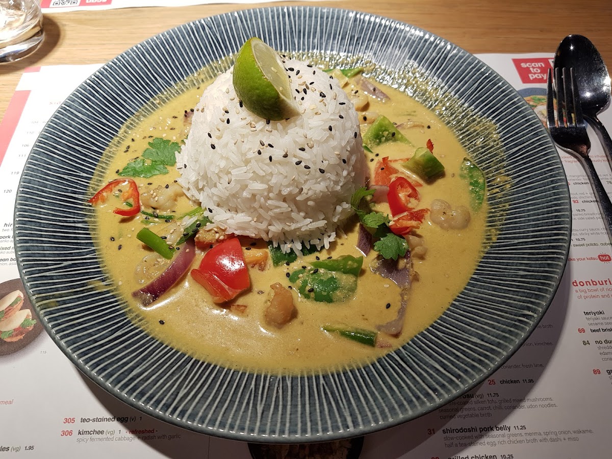 Wagamama offers a rich variety of dishes inspired by the bold and fresh flavors of Japan and beyond. Their popular Prawn Raisukaree is a must-try, offering a perfect balance of spice and sweetness. For those seeking something lighter, the Vegan Chicken Steamed Buns and Bang Bang Cauliflower offer a delicious plant-based alternative. Don't miss the Bibimbap, a hearty Korean-inspired rice dish with a mix of veggies and sauces.